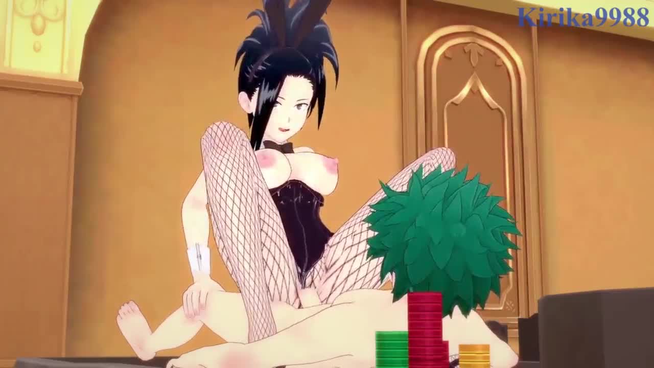 Mina Ashido and Momo Yaoyorozu team up with Izuku Midoriya for intense bunny girl sex