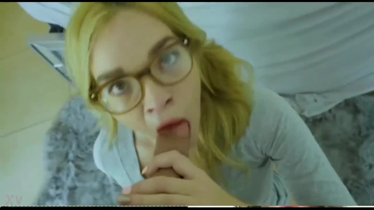 Blonde woman with glasses engages in a blowjob scene in this narrative.