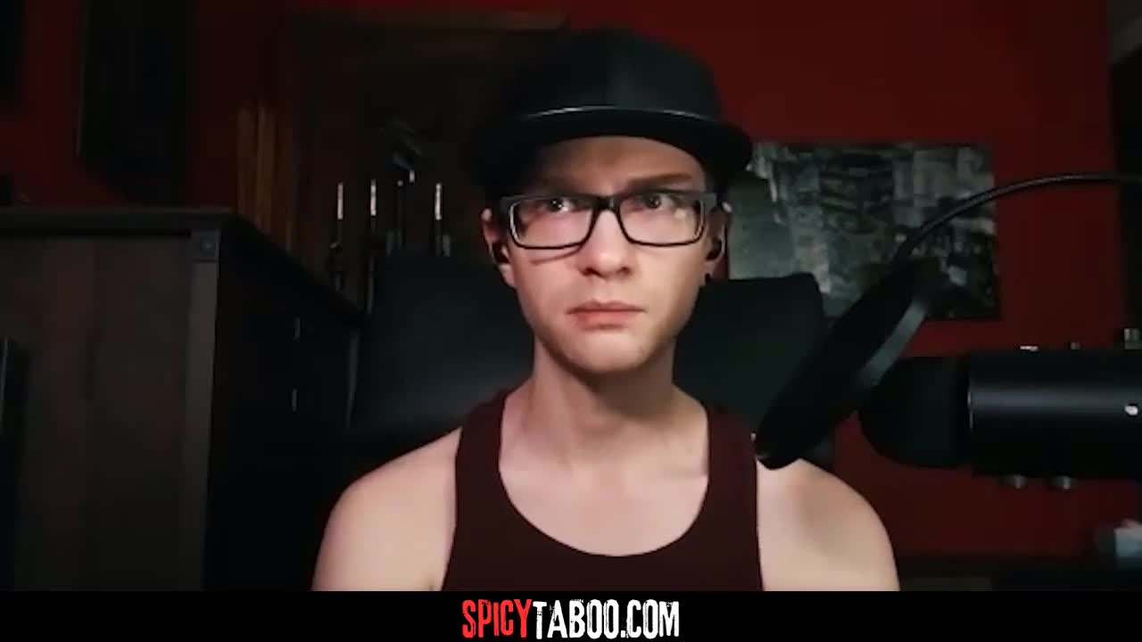 A babe with big natural tits masturbates on camera as her stepbrother watches