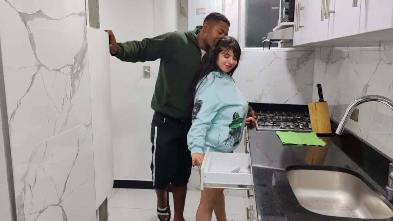 Massive Cock Drills My Stepsister in the Kitchen in Wild Homemade Action.