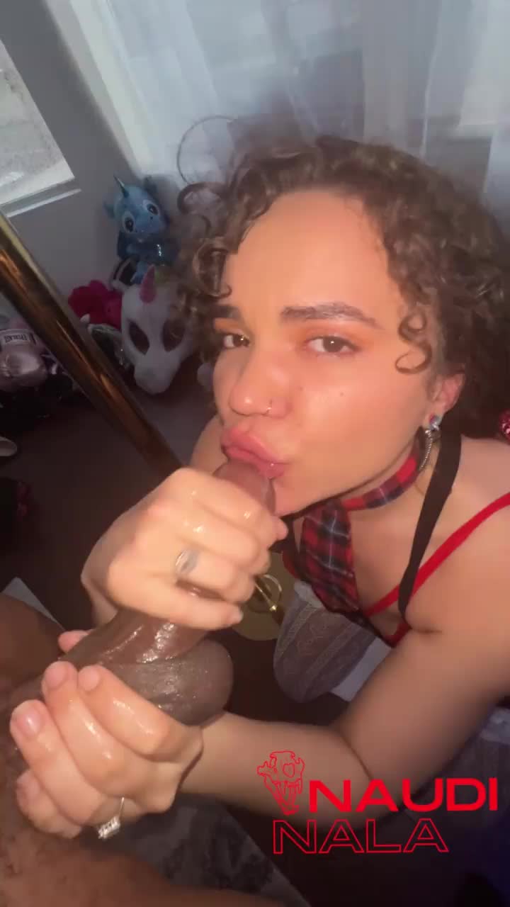 Curly-haired nympho in pigtails gets blowjob and facial from flaxk