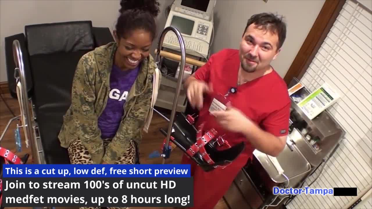 I'm Dr. Tampa conducting Lotus Lain's Tampa University entrance physical with gloves and spreading