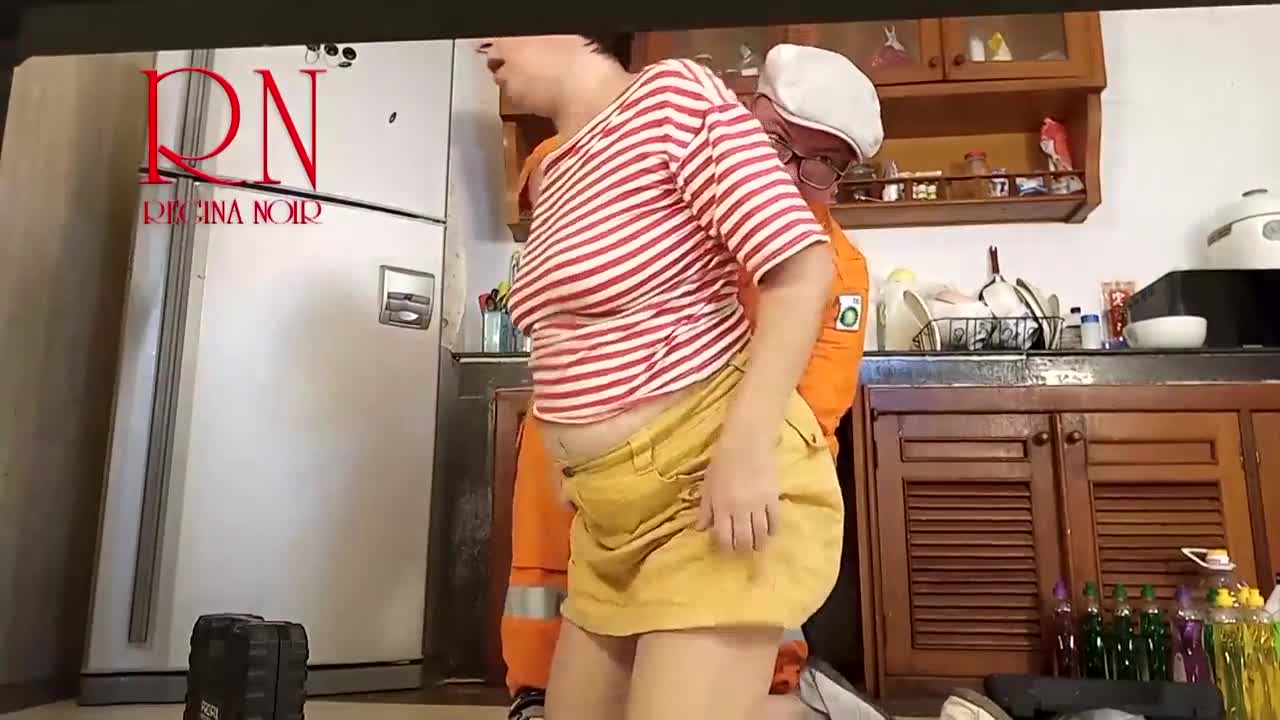 Cheating housewife fucks plumber while cuckold husband watches kitchen scene