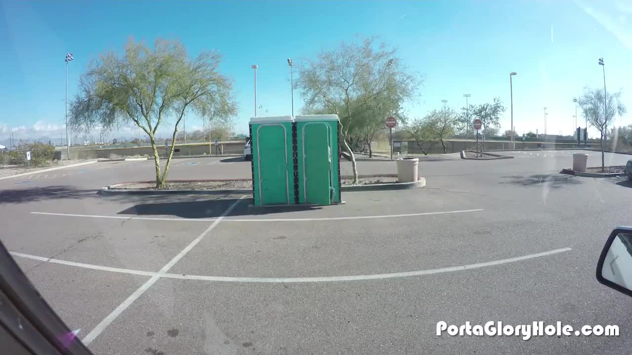 porta gloryhole at construction site leads to blowjobs and swallows in the outhouse